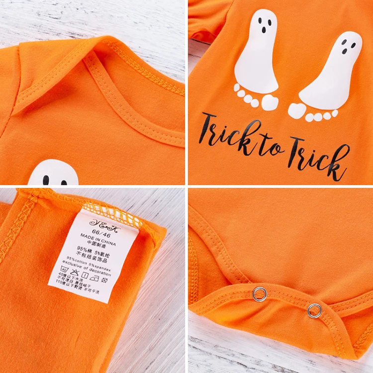 2021 flared long sleeve orange cartoon halloween kids clothes romper