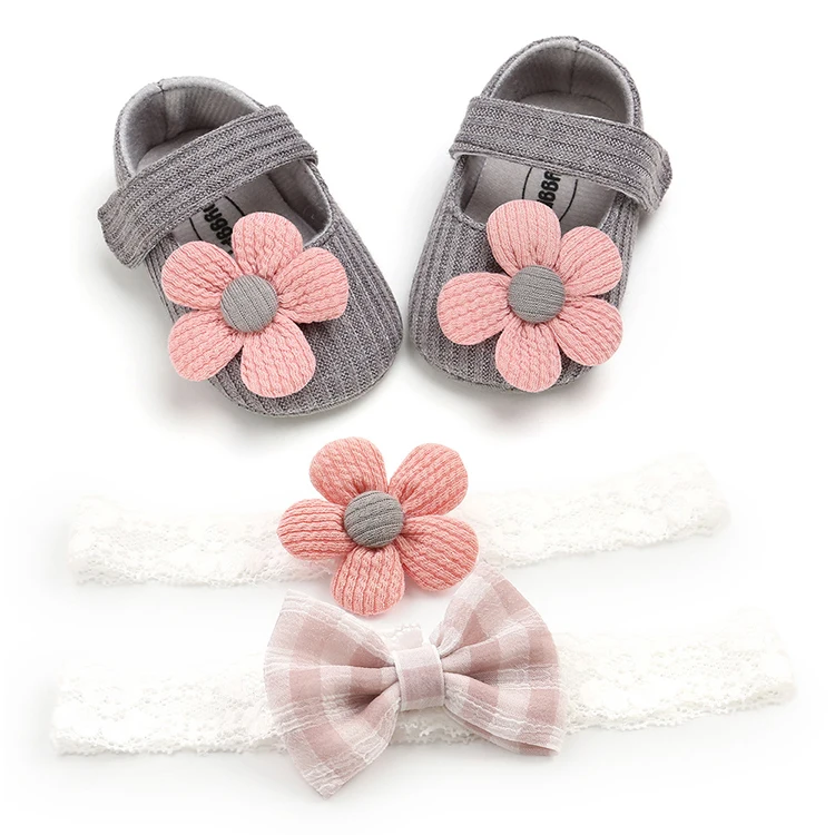 Focusnorm 0-18M newborn baby girls boys crib shoes cotton flowers hook soft cork baby shoes 6 colors headband
